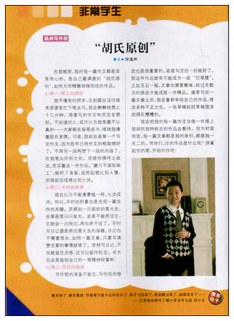 童联社温州作文网学员胡逸洲入选全国优秀少儿期刊《小学生》杂志2012年第1期“非常学生”。