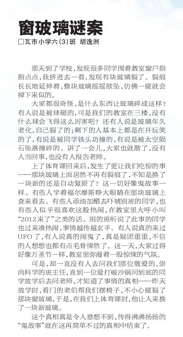 童联社温州作文网学员胡逸洲佳作《窗玻璃谜案》在2012年3月25日温州都市报新苗版发表。