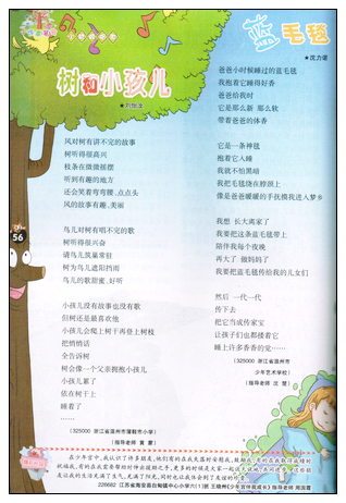 童联社温州作文网学员刘怡汝、沈力诺儿童诗《树和小孩儿》、《蓝毛毯》在广西师范大学出版社的《作文大王》2012年第1-2期上发表。