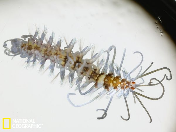 这条来自夏威夷海域的多毛目环节动物在实验室显微镜下显得特别巨大。据估计,全球海洋中共生活着大约8000种已知的海洋蠕虫,科学家们目前正在对这些海洋蠕虫开展深入研究。海洋蠕虫的生活方式包括,在海滩挖洞穴居住,或漂浮于海面之上,或生活于深海之中。