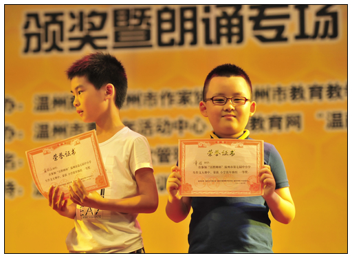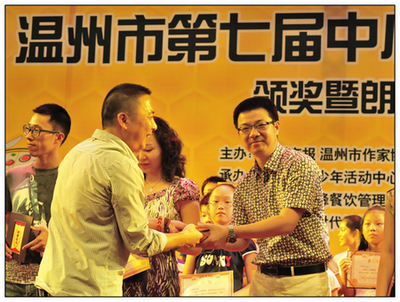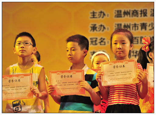 6月22日,“百胜蜂杯”温州市第七届中小学生作文大赛颁奖暨朗诵专场在市青少年活动中心举行,历时近3个月的作文大赛完美谢幕。 本活动由温州市教育教学研究院、市作家协会、市青少年活动中心和温州商报共同推出,已迈入第七个年头。童联社部分学员参加本次大赛,获得佳绩,沈楚老师被评为“优秀指导师”。