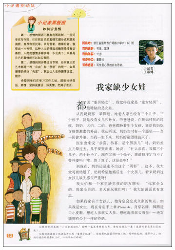 童联社温州作文网学员王泓博佳作《我家缺少女娃》在2012年第九期《快乐作文与阅读》上发表。