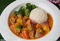 第一次在家吃咖喱饭我很期待,我从没吃过,但听说很好吃。端上来时果然如此,外表非常漂亮:白的一边是米饭,黄的一边是咖喱菜料。菜料堆积成小山,有鸡肉、土豆、青椒……闻一下,更香。我不禁说了一句:“very good!” 但这咖喱饭却“暗藏杀机”,我吃了一口,挺辣,但还撑得住,第二口就像吃了一大根辣椒似的,我连忙喝水。后来得知,老爸竟然放了两包咖喱,怪不得这么辣! 第二天,我们吃饭时,饭黄黄的,菜汤黄黄的,什么都是黄黄的,我便问老妈怎么回事?老妈说是昨天咖喱弄的,把锅碗都弄黄了。可恶!原来罪魁祸首是它。吃的东西好像全都沾上了咖喱味儿,吃不出食物的原味了。看来自己做咖喱饭坏处不少,这黄黄的“咖喱病毒”可不好消除!