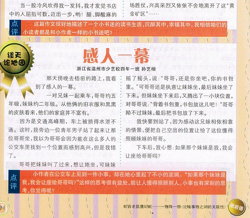 童联社温州作文网学员孙艺栩佳作《感人一幕》在国家级优秀少儿期刊《小学生》2013年第1期发表。