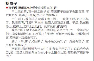童联社温州作文网学员张千瑶佳作《找影子》在2013年3月17日温州商报发表。