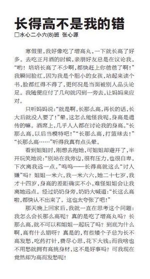 童联社温州作文网学员张心源佳作《长得高不是我的错》在2013年4月1日温州都市报新苗版发表。