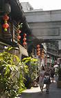 到朔门街口碰到了郑心禾,我便和她一起走。石板路很平稳,也有许多小巷,四周全都是老房子,还有狗在朔门街悠闲地走着。