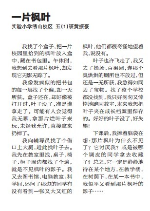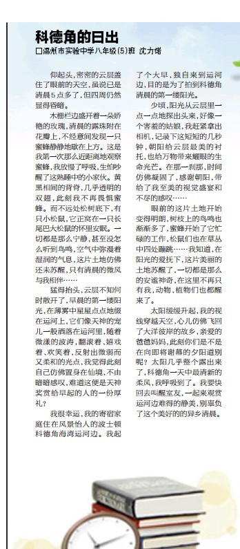 童联社温州作文网学员沈力诺佳作《科德角的日出》与学员黄振豪佳作《一片枫叶》在温州都市报2013年11月25日新苗版发表。