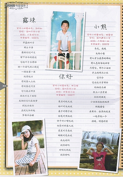 童联社温州作文网学员邵欣如、林子程、林星妤创作的儿童诗《露珠》、《你好》、《小熊》发表在中国少先队队刊青岛出版社出版的《悦读》(2013年第11期),同期发表的还有郑力豪的阅读思考随笔《阅读渐离传统》。