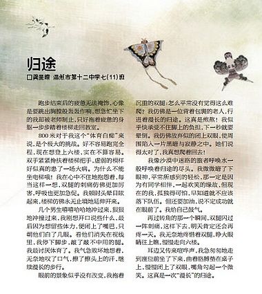 童联社温州作文网学员龚星晴佳作《归途》在3月31日都市报新苗版发表。