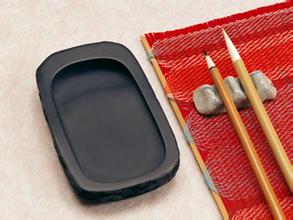 打开砚台的盖子,里面分开一大一小两个如同小池塘那样的凹槽。大的用来加水磨墨,小的则用来刮笔、搁笔。由于年代古老,砚台上留下很多刮掉干掉的墨迹,我想:外公小时不知用过多少次这个砚台,才写得这么一手漂亮的好字。我仿佛可以看到外公端正地坐着,拿起笔,一丝不苟地练字。