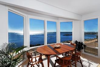 进了餐厅,一股辣酱和沙拉酱的味道扑鼻而来。向四周看去,有两面竟然是玻璃墙,一眼望去便是迷人的大海,水天相接,没有边际,太美了。