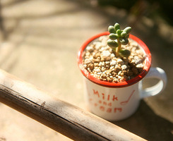 原来以为自己莫名其妙想要去打理一个丑不拉几的仙人掌的念头过两三天就好了,却不知不觉地坚持了一月到了开学。刚开始不忙,现在也是。于是没事就将它放于午后阳光——透过茶色玻璃的情况下晒晒太阳。仙人掌小,不高而扁圆,肉肉的,全身的刺蛮硬,上次料理它的刺时不慎被戳了一把,等血流出来了才感觉疼,却丝毫没有觉得它讨厌,倒是心里的一个念头越来越强烈了:这个小东西真可爱,真想一直养下去啊。对于这个想法自己是十分吃惊的,毕竟已经极长时间没有这么在意的东西了,然后又突然意识到:我是不是在关心这个东西的。