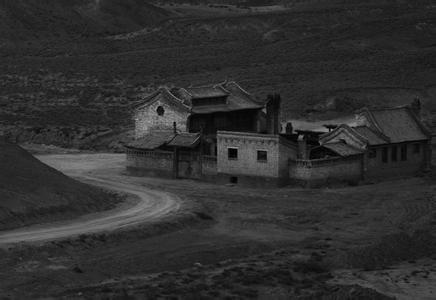 门很小,但破损不少,上边凤舞龙翔的花纹只有模糊的轮廓,门边可能本有一个木架,现在掉了,露出一个大缺口。太阳快下山了,一缕残阳抹在木门上,使得房屋更古老、沉闷了。
