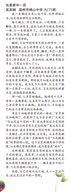 童联社中学创作班学员吴奕娴、孙乐伊、芮好佳作在2015年2月24日《温州商报》新学习版发表。