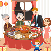 那天晚上,爷爷、奶奶还有哥哥一家都来我们家吃酒,大家都很开心,我也很高兴,和爸爸妈妈一起举起酒杯向大家敬酒,并祝大家新年快乐!那天的菜有很多,而且都是我喜欢的,年糕、鱼、八宝饭……样样不少。