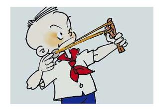 我把橡皮筋摆成一个三角形,把石子儿放在橡皮筋的一端,使劲往外拉,直到再拉就断的时候,把手一放。石子儿像流星般地击中前面的一个同学。顿时,我感觉自己是个射击大师,每颗子弹百发百中。他大声叫到:“谁用石子砸我头的?”班级里一片喧哗声,但大家都知道是我干的。过了很久才安静下来。