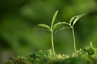 一个星期后,我去看了看,发现长出了一棵圆圆的小苗,我高兴得连忙跑到楼上拿来铲子给它松土。