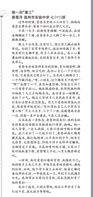 温州作文网童联社学员吴家媛、李民洽、黄星洋“做一回”主题创作佳作在温州商报2015年4月12日新作文版发表。