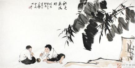 芭蕉叶的宽阔令人赞叹,我抓住重点,用指头一大块一大块地抹着。一涂,一切,一下儿一块儿,没有墨画的深浅调和,即也不失美感。我的心情十分神怡,天空的蔚蓝,与蕉叶相结合,颜色十分清爽。
