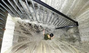 台风来了,大雨点就像一颗颗冰雹一样砸下来,外面的人急急忙忙往家跑,像逃亡一样。