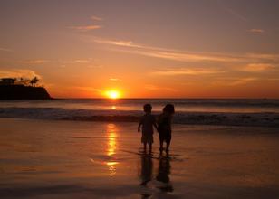 “子婕,我们一家人站在一起,让别人帮我们拍张照吧!”妈妈说着拉着我选了个好位置。迎着美丽的日出,伴着海浪和鸟叫声,我们三人手拉这手,站在一起。我的心被震撼到了,原来日出这么美丽。太阳充满了朝气与正能量,带人到忘我的境界。这一瞬间,真美好。