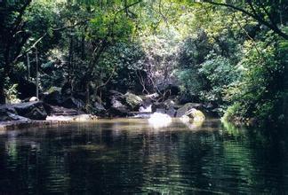 空气很好,树很多,潭上一片绿,妈妈说:“因为这里的空气在流动,空气才会那么清新。”我马上大口呼吸起来。这里就我们几个人,游得很畅快。一颗颗小石子上长满了青苔,像铺上了一层绿毛毯,这里的水很甘甜,我尝了几口,心想:这下也不怕呛水了 ,哈!仰望天空,两边都是山,阳光不多,很阴凉。我“躺”在水面上,舒服极了。