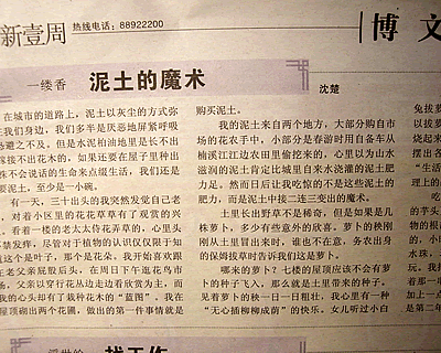 沈楚老师散文新作《泥土的魔术》在《新壹周》博文版发表