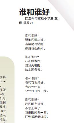 童联社学员陈孜力诗歌发表于2015年11月6日温州都市报。