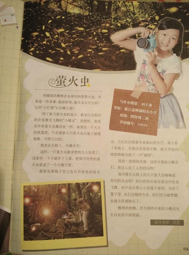 佳作《萤火虫》发表在杂志《少先队小干部·悦读》