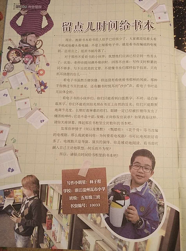 童联社温州作文网学员林子程佳作《留点时间给书本》、