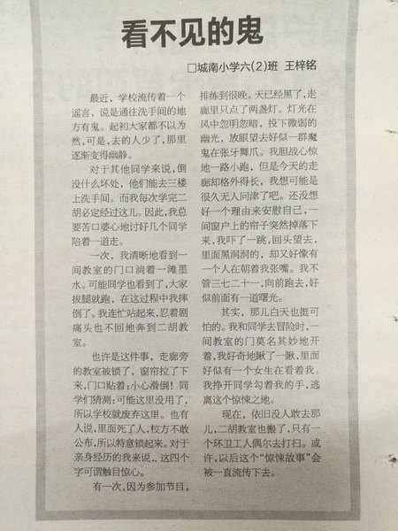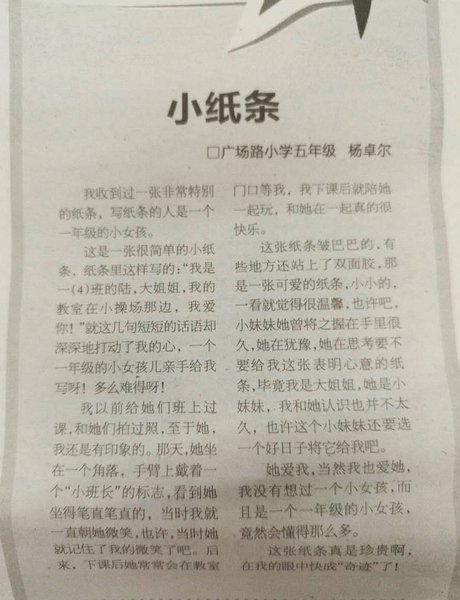 童联社学员杨卓尔佳作《小纸条》、王梓铭佳作《看不见的鬼》在2015年5月19日温州广播电视报发表。