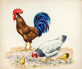 爸爸从外面抱回来一只公鸡养在阳台上。