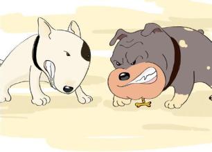 此时“大白”虽然势单力薄,但它气势不输“狗”。双方先互相用凶巴巴的眼神瞪着对方,然后“大黄”开始发话了,它先是将眼睛瞪得圆圆的,嘴里“汪--汪”叫,好像在说:“快点投降,不要做无谓的抵抗!”“大白”也不甘示弱,“汪--汪”地说:“以多欺少,不算好汉,有本事单挑!”“大黄”仰起头,趾高气扬地说:“哈哈!我就是狗多力量大,谁让你来抢我的地盘呢?”“大白”的主人眼见自己心爱的狗狗孤单无援,要吃大亏的,正急得像热锅上的蚂蚁。一不留神,被旁边的“狗小弟”趁机而入,扑上去想咬“大白”的脖子。幸亏“大白”的主人眼疾手快,迅速抱起了“大白”。“大黄”和“狗小弟”们偷袭没有得手,它们又使出一计,把“大白”和它主人团团围住。它们就像电视里的恐怖分子一样,眼睛露着凶光,嘴里发出凶狠的叫声,身体不停地摆动。“大白”主人无计可施,只能虚张声势,重重地跺了一下脚,“大黄”和“狗小弟”不由自主地吓得后退了几步。主人抱着“大白”趁机冲出重围,飞也似地逃走了。