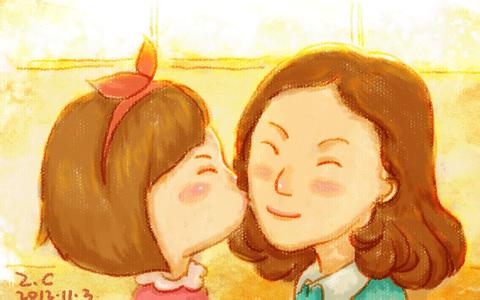 妈妈说:“爱是你摔倒时有人扶起你”。