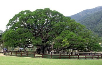 这真是一棵很大的榕树,要好几个人才能将它围住。粗厚的树枝互相交错,在我的头顶展开了巨大的树冠。但这树扎根的土地却只有那被矮墙包住的小小花坛,少得可怜。