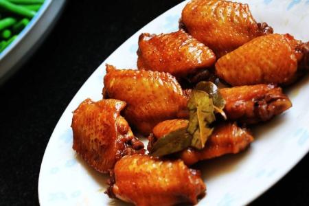 这时我把蒜切碎,倒了一点酱油,调成酱汁。鸡翅放到酱汁里浸泡。为了能够入味,我上下翻动鸡翅,鸡翅打着跟斗,像翻筋斗云一样。十分钟后,我倒入少许油进锅里,油发出“哧哧”的声音,等油慢慢变热,再把鸡翅放进去。开始煎鸡翅了,待颜色慢慢变成金黄色,我又翻另一面煎,直到两面都变成金黄色时,倒入150毫升的可乐。