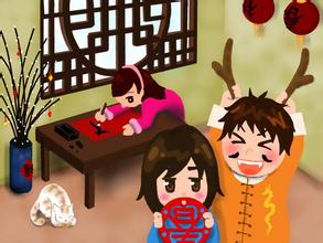 第二天,正好是除夕,我和妈妈把自己把写的对联贴在门外,还拍到我们班级的群里,好喜庆,我自己觉得很开心。
