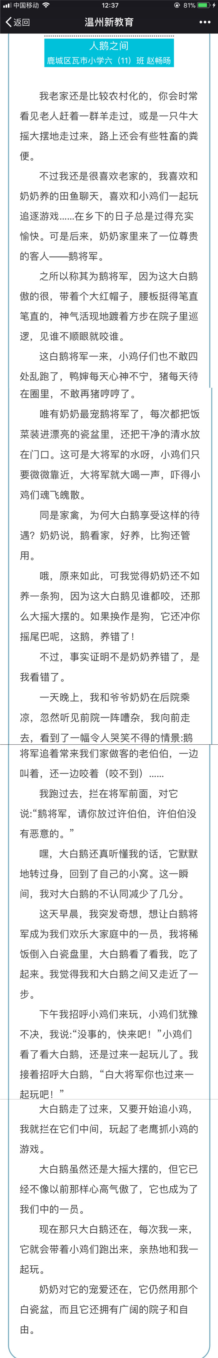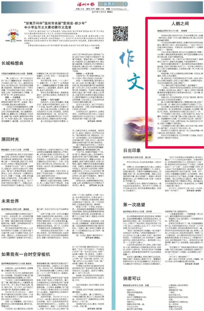 赵畅旸《人鹅之间》温州日报发表