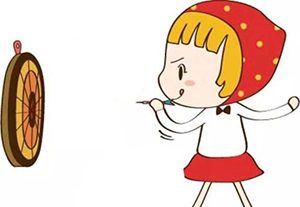 今天作业不多,老妈也没说什么,但看我飞得这么差,都飞墙上了,就有一点看不下去了,起身来教我。我当然愿意,跟着老妈的动作,我一下子就把飞镖扔准了,飞镖在空中转了一个圈,然后又一下子停在了飞盘上。