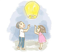 那天我在泰顺表姐家楼下放孔明灯,那个时候我根本就没注意到我的斜上方就是一座长满大树的山,于是我就“送”孔明灯上天了,它飞的过程中我一直目送着。突然,不知是一股神秘的力量还是上天的玩笑,孔明灯摇摇欲坠,不一会儿就落了下来,下面正是一座山啊!我的小心脏都快飞出去了!那时我双手合十道:“别着火,别着火……”