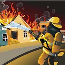 只见消防叔叔熟练地拿起喷水管,喷向那一片“火海”,火被水压住了,微微服输了,但水仍未能真正征服火。水继续努力与火进行斗争......过了许久,火终于奄奄一息了。