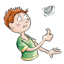 后来,一位老婆婆捡到了我。就在这一瞬间,一个电话打来,她同时有了一个孙子、一个孙女。“呀,真是多亏了这枚幸运硬币,难道这枚硬币给我带来了好运?我太幸福啦!”