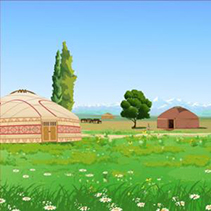 那时,我们被老爸的一条歪路带入了茫茫无际的,看不到人烟的大草原,沿着一条土路开了两个半小时,却仍没有走出去。此时已是下午三点半,而我们只吃了一点压缩饼干,早已饥肠辘辘。突然在不远处的山坡上,我们看见了一个棕色的像蒙古包一样的东西。