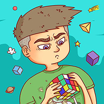 他玩魔方竟也很好,我们全班人都知道,他一向学习很差。没有想到,这学期他竟然学会了三阶魔方。我们班会六面的人都没有几个,有些人还觉得三阶魔方公式太难记,改行玩三角魔方了,这应该是他开挂了吧。