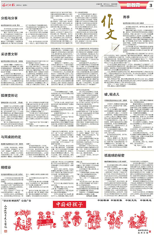 徐舒然、厉亮、朱海天佳作温州日报作文版发表