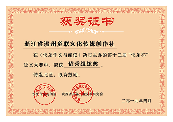 童联社在第十三届“快乐杯”征文大赛中获得优秀组织奖