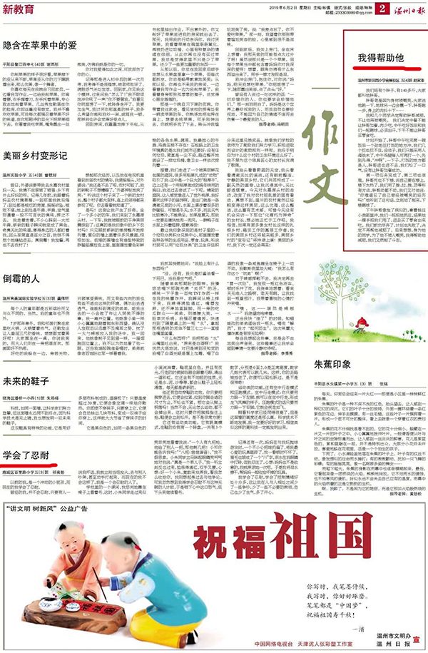 赵宣泽、祁奕彰佳作温州日报作文版发表