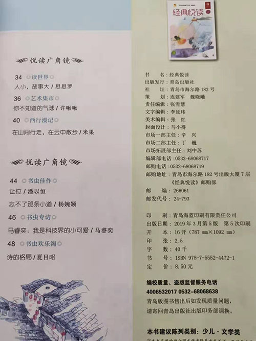 潘以恒,杨婉颖佳作发表《经典悦读》杂志2019年3月刊!