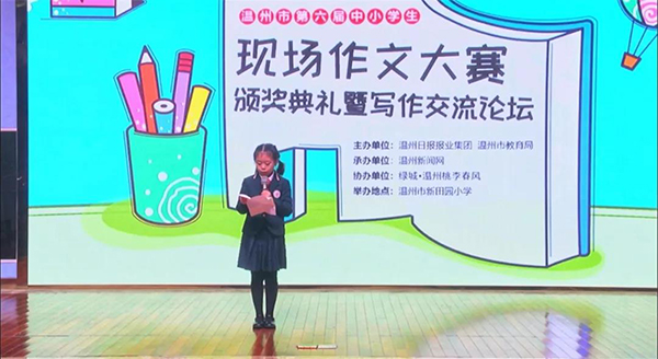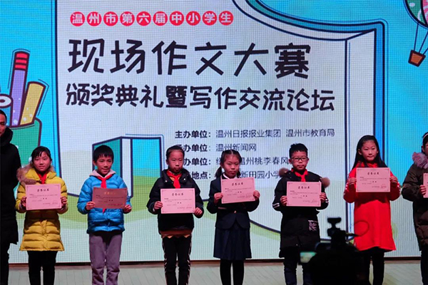 第六届温州中小学生现场作文比赛中荣获一等奖佳绩
